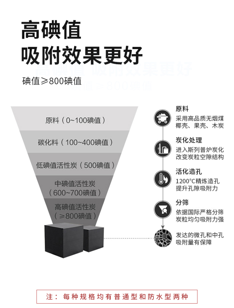 1、原材料性質的影響:雖然原材料都是煤粉,但不同煤中的含碳量、灰分、揮發成分不同,同工藝加工出來的蜂窩活性炭就有區別,一般無煙煤在活化時的溫度要高于煙煤20-30℃ 。