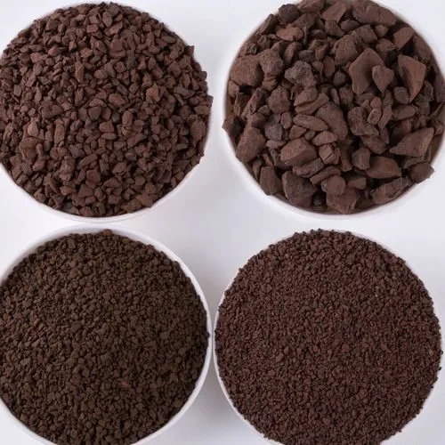 采用天然錳礦石經(jīng)機(jī)械破碎、水洗、多次篩分加工而成。外觀呈褐色,表面粗糙。錳砂密度大、硬度高、不易磨損與破碎、化學(xué)性能穩(wěn)定、不含有毒物質(zhì),是一種很強(qiáng)的氧化劑。