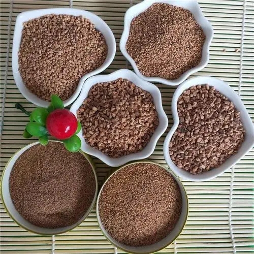 果殼濾料采用植物果殼為原料,經(jīng)破碎、拋光、蒸洗、藥物處理和多次篩選加工而成。可采用的植物果殼有核桃殼、椰子殼等。果殼濾料具有耐磨、抗壓、不在酸堿性水中溶解、不腐爛、不結(jié)塊、易再生,較強(qiáng)的除油性能等優(yōu)點(diǎn),被廣泛運(yùn)用在各種廢水處理(特別是含油廢水)中。果殼濾料是取代石英砂濾料來提高水質(zhì)、大幅度降低水處理成本的新一代濾料。