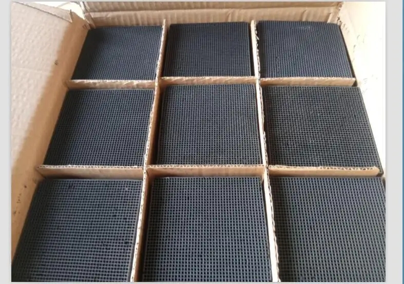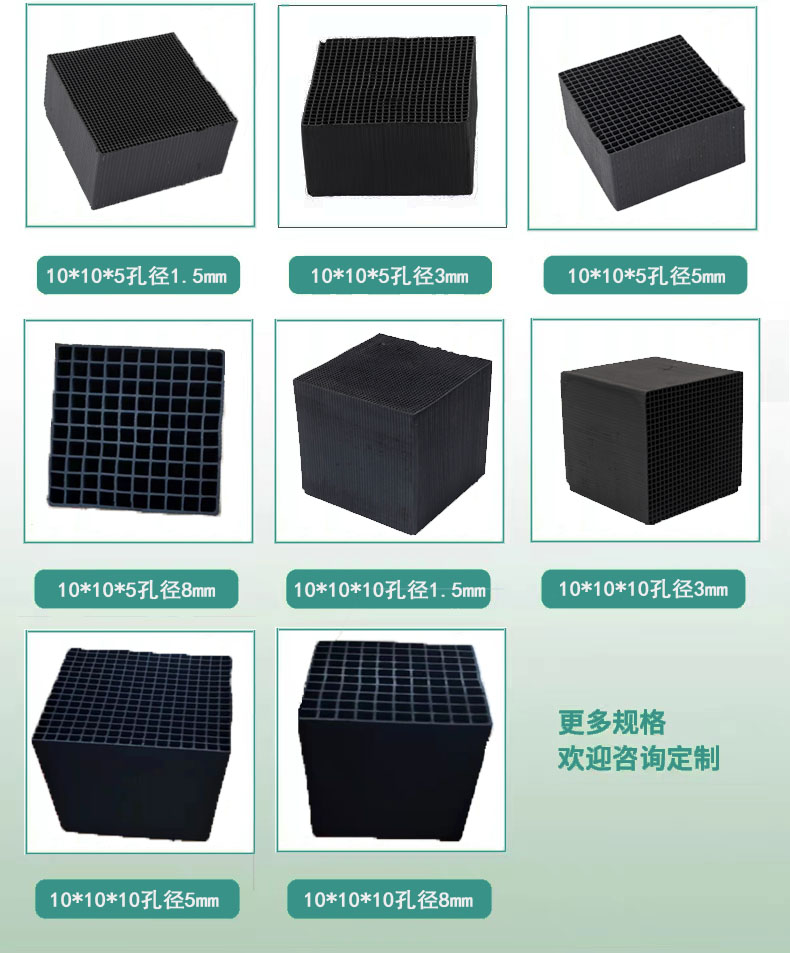 廢氣首先通過粉塵過濾器中的過濾層,去除粉塵粒子,凈化后的氣體再通入放置有蜂窩狀活性炭的活性炭吸附塔(活性炭吸附床一備一用),與蜂窩狀活性炭充分接觸,利用活性炭對有機物質(zhì)的強吸附性將氣體凈化,處理后的氣體可達標(biāo)排放。