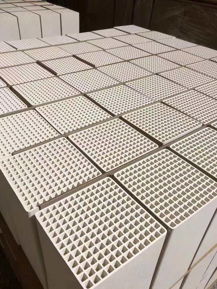 結構:內部由大量平行、均勻分布的六邊形(或圓形、三角形等)孔道組成,孔道尺寸通常為 1~5mm,比表面積可達 200~500 m²/m³(是傳統耐火磚的 10~20 倍),單位體積內提供極大的熱交換面積。