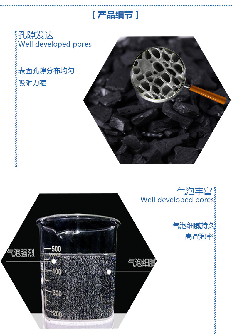 4、椰殼活性炭為小分子孔隙結(jié)構(gòu),將活性炭放到水里,其吸附水分子時(shí)所排空氣會(huì)產(chǎn)生許多非常細(xì)小的水泡(肉眼剛好能看見),密密麻麻的不停浮向水面。而煤質(zhì)活性炭一般為大分子孔隙結(jié)構(gòu),所產(chǎn)生的氣泡相也對較大。